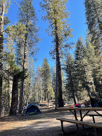 After breakfast we left for the campsite, about two and a half hours away. The campsite we had reserved was about 90 minutes into Yosemite National Park, buried deep in the thick of tall woods and endlessly winding roads. The site was the first of a dozen or so along a small creek, hidden three winding miles away from the main road: Tamarack Flat Campground. The site itself, thankfully, was more secluded than some of the others, though a further walk from the restrooms. Each site included a picnic table, a fire pit, and a bear box. The bear box, a large metal box with a base about 6-inches off the ground and the top about 3 feet higher, is where all food stuff, deodorant, and the likes Must be kept at all times. If a ranger would find any of those contents even in our cars, we could be fined up to $5,000; the bears can rip open car doors to get food stuff inside. The bear box is meant to keep its contents safe from bears.